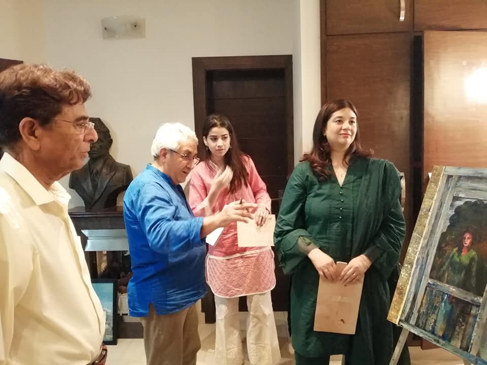 The group show features the artwork of Maleeha Mushahid, Madeeha Baig, Sharmeen Ali, and Nabeela Ahmad. The debut exhibits of the promising artists were reviewed by noted artist and activist Nageen Hyatt in the accompaniment of senior artists Abbas Shah, Najamul Hassan Kazmi from Baltistan, Riffat Khattak, Ejaz Khan and art connoisseur Altaf Ahmad.